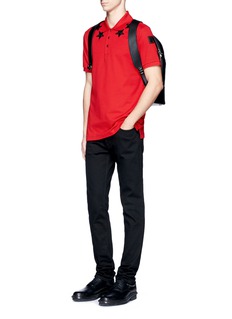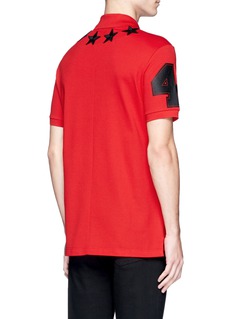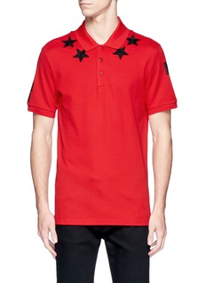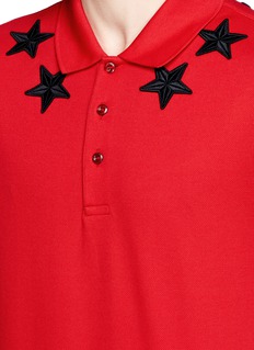 五角星及数字“74”都是纪梵希的标志,此款polo衫把两者化为鲜明的点缀元素,以徽章及胶印形式缀于红色纯棉珠地布上,领下的星形徽章增强了触感,左右袖分别印上“7”及“4”图案,显得抢眼独特。