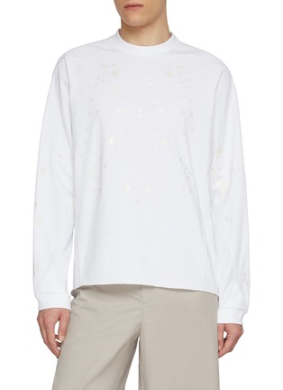 This Goldwin sweatshirt introduces a quiet play of luminosity through its subtle dot motif, creating a soft, atmospheric graphic across a smooth technical knit. Lightweight stretch and a relaxed silhouette make it an easy layering piece for elevated everyday comfort.