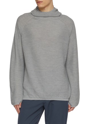 Knitted in a seamless wholegarment construction, this perforated top drapes with sculptural softness while maintaining airy breathability. The wool-blend yarn lends gentle warmth, and its adjustable collar allows for expressive styling across seasons.