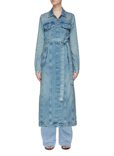 Good American 这款大衣裁自精品牛仔布,并以水洗工艺呈现复古蓝色调,长款设计结合腰带缀饰更显随性不羁,助你轻松打造简约吸睛的摩登造型。