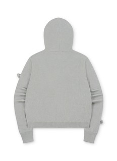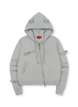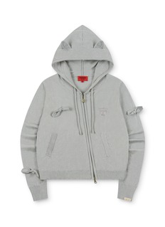 Softly structured with a playful twist, this zip-up hoodie is accented with delicate bow details that lend charm to an everyday silhouette. Finished with a star-shaped zipper pull and subtle embroidery, GOODBAI blends cosy comfort with whimsical character—perfect for layering on relaxed days.