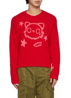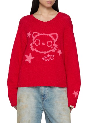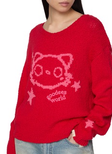 GOODBAI 用松弛轮廓与环保细节告诉世界:告别浮夸,也能很时髦。品牌旗下的 Goodees 角色则以毛绒绒概念治愈你的日常。这款套头衫采用宽松版型,轻松驾驭多种风格;小V领设计,修饰颈部线条;机器小猫搭配五角星印花,成为视觉焦点,打造个性趣味穿搭。