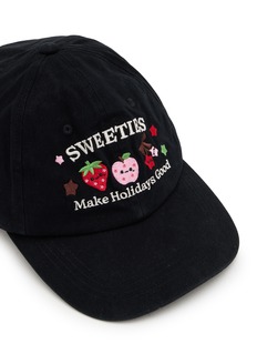 This baseball cap brings playful charm to your daily edits. The smiling fruit and star motifs add a cheerful touch, making it a delightful, functional accessory.