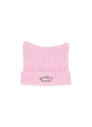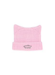 The GOODBAI GOODEES cat ear beanie combines playful charm with cosy comfort, featuring a ribbed knit design and a whimsical touch. Emblazoned with "goodees world," it adds a fun, youthful vibe to your cold-weather essentials.