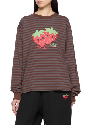 Grounded in a warm, earthy palette, this striped long sleeve top is animated by GOODBAI’s signature strawberry graphic, lending a playful contrast to its relaxed silhouette. Crafted with gentle stretch, it’s an easy everyday piece—ideal with matching sweatpants or pared back with denim.