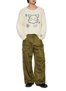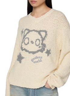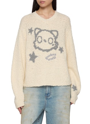 GOODBAI 用松弛轮廓与环保细节告诉世界:告别浮夸,也能很时髦。品牌旗下的 Goodees 角色则以毛绒绒概念治愈你的日常。这款套头衫采用宽松版型,轻松驾驭多种风格;小V领设计,修饰颈部线条;机器小猫搭配五角星印花,成为视觉焦点,打造个性趣味穿搭。