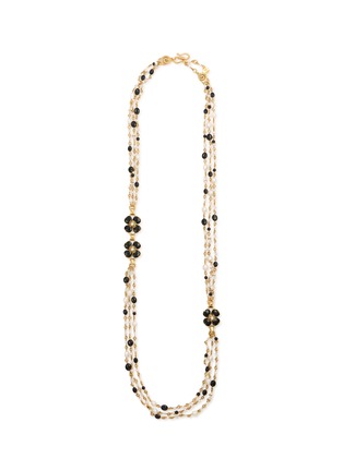 Goossens 这款戒指采用金色金属打造,带来花朵绽放的灵动瞬间,并以黑玛瑙和串珠点缀增添精致温婉气息,为你的颈间涂写靓丽一笔。
