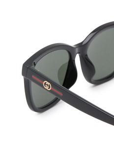 Step into the sleek sophistication of Gucci with these impeccably styled sunglasses. Featuring a classic black frame with a matte finish, these sunglasses are adorned with the distinctive Gucci logo in gold at the temples, offering a subtle yet impactful statement of luxury. Perfect for any occasion, they provide essential UV protection while enhancing your look with a timeless elegance that's quintessentially Gucci. Ideal for those who covet a blend of iconic design and modern functionality in their eyewear.
