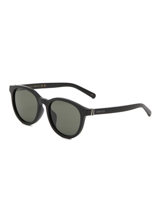 Embrace Gucci's minimalist sophistication with these sleek round sunglasses featuring refined acetate construction and subtle temple branding. The classic silhouette creates an effortlessly chic profile whilst premium craftsmanship ensures exceptional comfort. Perfect with tailored blazers or flowing midi dresses for understated Italian elegance.