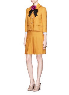 古驰色彩缤纷的设计为春夏带来一份清新感觉,这款半身裙以柔和的芥末黄色吸引眼球,以真丝及羊毛混纺的卡迪面料具有微弹性,穿着时格外舒适,下半部加入工整的褶裥点缀,体现女生优雅甜美的气质。