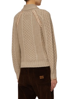 Guest in Residence 以设计未来传家之宝为使命,推出经久耐穿的经典针织品。这款开衫以羊毛混羊绒纱线织就,麻花与华夫格纹理结合手工钩针细节,展现现代奢华与匠心工艺。