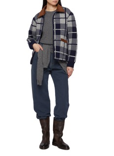 A versatile layering piece, this jacket reverses from a bold plaid wool–cashmere blend to a sleek quilted shell. Accented with a corduroy collar and contrast flap pockets, it balances rugged charm with refined function—an effortless companion for shifting city and outdoor settings.