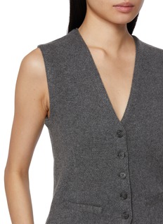 Guest in Residence 以设计未来传家之宝为使命,推出经久耐穿的经典针织品。品牌灵感源于 Gigi 在纽约生活时从父母那里继承的、承载着回忆的二手羊绒毛衣。这款背心以舒适羊绒面料和流畅剪裁丝滑融入你的工作日常。