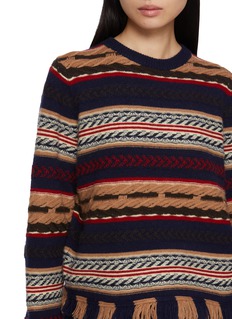 Guest in Residence 以设计未来传家之宝为使命,推出经久耐穿的经典针织品。品牌灵感源于 Gigi 在纽约生活时从父母那里继承的、承载着回忆的二手羊绒毛衣。这款毛衣带有纹理提花条纹、罗纹饰边和流苏下摆细节,元素丰富,为叠穿和日常穿着而设计。