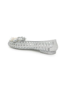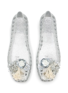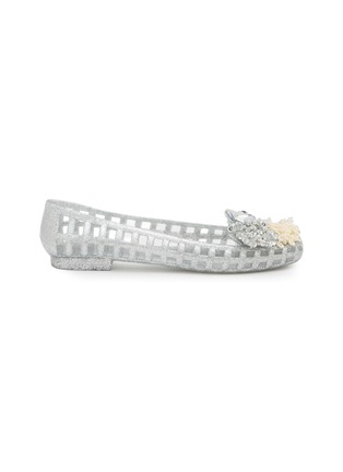 Heavenly Jelly Shoes 以轻盈透明材质与梦幻装饰打造摩登甜美风格。这款平底鞋以花卉流苏缀饰点亮简洁方头设计,赋予经典芭蕾鞋俏丽优雅气息。