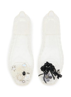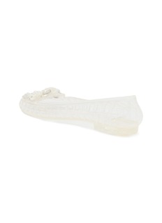 Heavenly Jelly Shoes 以轻盈透明材质与梦幻装饰打造摩登甜美风格。这款平底鞋以花卉流苏缀饰点亮简洁方头设计,赋予经典芭蕾鞋俏丽优雅气息。