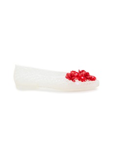 Heavenly Jelly Shoes 以轻盈透明材质与梦幻装饰打造摩登甜美风格。这款平底鞋以立体花卉缀饰点亮简洁圆头设计,赋予经典芭蕾鞋俏丽优雅气息。