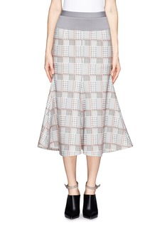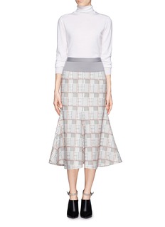 新锐品牌HELEN LEE简约而满溢趣味,新季带来大量以兔子为灵感的服饰,此款长裙更以复古的千鸟格融合趣味十足的小兔印花,图案素雅清新,裙腰纯灰色拼贴具有点睛作用,低调中呈现满分创意。