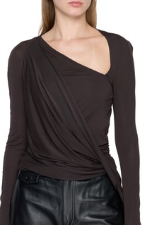 Embrace versatility and innovation with Helmut Lang's draped top. This unique piece combines an asymmetrical design with elevated texture. Perfect as a standalone piece, elevated by leather shorts or relaxed-fit pants.