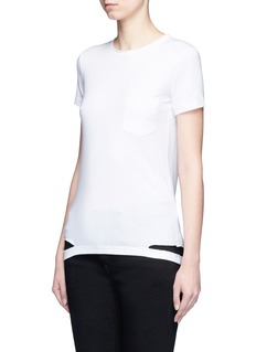 海尔姆特朗秉承极简主义,以丰富细节打造充满都市格调的单品。这款以口袋T恤为基础,下摆两侧采用切割技术塑造出缺口,瞬间为平凡款式注入颓废感,展示出品牌非凡的创作力。