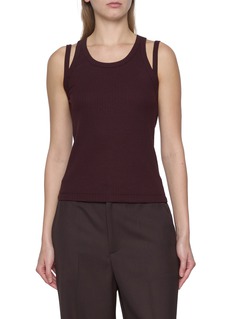Helmut Lang brings sharp modernity to this ribbed tank, framed by doubled shoulder straps and a sleek, body-tracing silhouette. Its clean construction and tactile stretch cotton make it an effortlessly assertive piece, ideal for grounding both tailored and off-duty looks.
