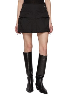 Helmut Lang embraces a fusion of functionality and elegance with this utility skirt. Crafted with spacious flap pockets, this piece lends a refined touch suitable for both casual and dressy occasions, enhanced with utility and style.