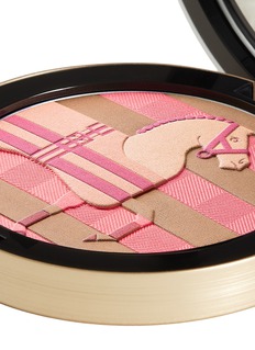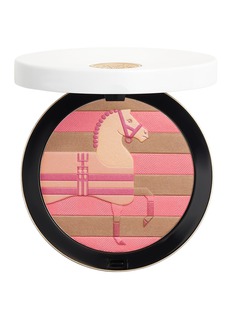 This limited-edition Rocabar silk powder pays tribute to Henri d'Origny's design for the Rocabar silk scarf inspired by the rugs used to keep racehorses warm in the 19th century. The details and colours of the motif come together to reveal a subtle, elegant design. The formula is both airy and silky, melting into the skin. It combines pigments and fine mother-of-pearl to deliver a natural, luminous finish enhanced by a long-lasting veil of rosy color that complements every skin tone.