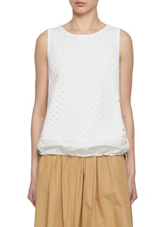 Herno 这款背心将结构感与柔美风格巧妙融合,精致的钩针风格蕾丝拼接,凸显优雅气质。可调节抽绳下摆增添灵活性。可搭配西装外套,打造职场精致造型。