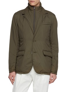 意大利品牌 Herno 以功能性雨衣、羽绒服和外套为主打产品,以扎实用料及高端性能著称。这款夹克巧妙融合西装廓形,轻盈填充注入温度,缩小的平驳领和缝线细节构建微妙时尚对话,融入你的秋冬商务日常。
