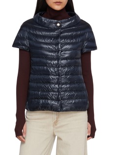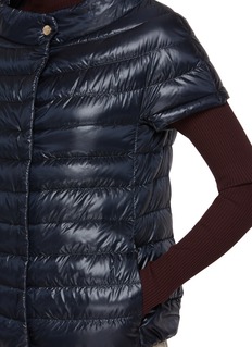 Herno 以极简实用主义诠释冬日通勤,这款马甲用轻盈尼龙面料打造叠搭穿着体验,宽领设计添保暖细节,短袖廓形适配叠穿场景。搭配高领针织衫,可演绎温暖又利落的冬日造型。