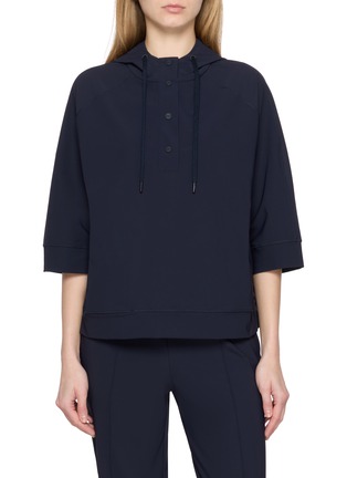 Herno 融合功能性和设计感,彰显了低调奢华的意大利设计精髓。这款连帽衫采用质感面料剪裁,插肩袖和拼接下摆、袖口细节打造立体轮廓,抽绳连帽设计注入运动格调,