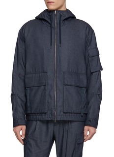 This jacket marries urban elegance with weather-ready functionality, featuring a multi-pocket construction and a protective hood. This exquisite piece offers a timeless outerwear experience that elevates every urban adventure with unmatched sophistication and enduring style.
