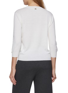 Herno 融合功能性和设计感,彰显了低调奢华的意大利设计精髓。这款上衣采用细腻羊毛针织,七分袖的剪裁和 LOGO 仿钻缀饰带来气质提亮,轻松融入你的秋冬日常。