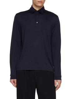Herno refines the polo silhouette with the elegance of fine wool jersey. This long-sleeve style delivers a soft, fluid drape and natural sheen, elevated by a half button placket and minimalist chest pocket. A sophisticated layer for trans-seasonal dressing and casual tailoring alike.