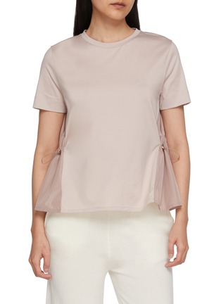 Herno 以极简质感诠释通勤风格,这款 T 恤用侧边抽褶设计添灵动细节,浅粉底色衬出柔和氛围,宽松廓形适配多场景。搭配米白针织裤,可演绎慵懒又清新的日常造型。