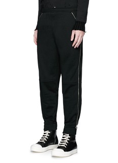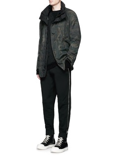 Hood by Air这款纯棉长裤大气简洁又具有厚实的手感,两侧附金属长拉链开合,不仅增添酷感魅力,同时可以通过开合调整裤腿松紧度,让您随心打造不同穿着效果。右侧拉链拉开后露出白色品牌名称胶印,新颖手法展现摩登风格。