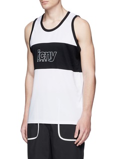 Mike Cherman创建的美国自行车服装品牌ICNY以反光面料为设计特色。这款背心用经典的白色拼黑色组合碰撞出清新活力风格,黑色面料上饰以灰色品牌标志反光胶印,令您在夜间活动更加安全。半透网眼面料舒适吸汗,是您运动时的理想选择。