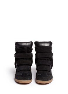 Isabel Marant Étoile这款签名式坡跟运动鞋是明星名流们街拍时的最爱,隐藏式坡跟无形之中令身材更修长,搭带式设计休闲味十足,是非常百搭的单品,并且穿着舒适,绝对是时尚女郎们的鞋橱必备款。