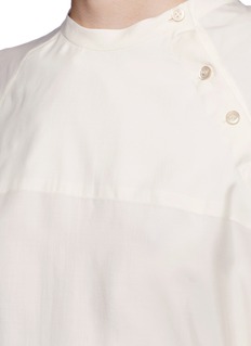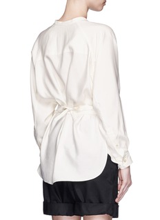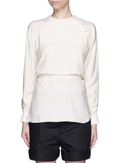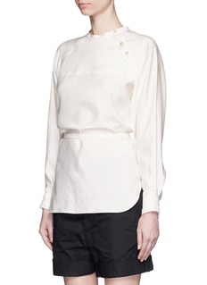 Isabel Marant这款上衣采用真丝面料制作,具有轻盈透薄的细软质感,白色主调洋溢春夏清新明媚的气息,加入肩部系扣及腰带等特色细节,衬托您低调简约的清雅个性。