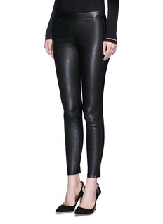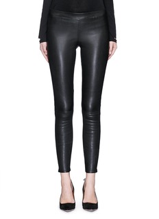 J Brand这款紧身裤采用富有弹力的羊皮打造,配以精准修身剪裁,修饰出优美䊹细的腿线。设计师巧妙将口袋及门襟等细节省去,以保持光滑简洁的观感,同时展示出摩登酷感。