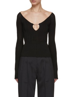 JACQUEMUS 定能为你的摩登衣橱增添了精致气息与设计感。这款针织上衣以罗纹针织面料制成,胸前的 Logo 五金尤具辨识度。