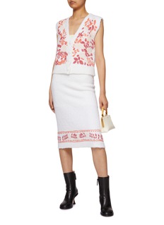 JACQUES WEI 融合了法式独有的自由和浪漫,用西方的语境诠释中国传统韵味。这款半身裙衣身的花朵造型刺绣增添些许优雅气息,针织走线细腻,为你打造优雅复古魅力。