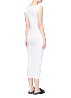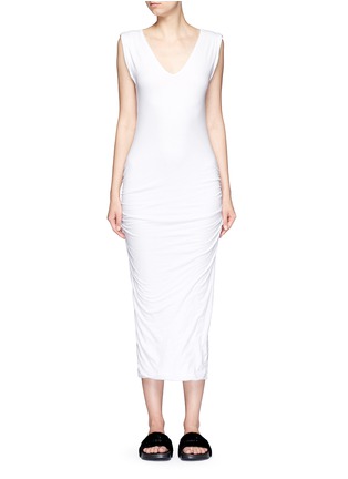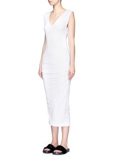 James Perse这款无袖连衣裙体现品牌对极简主义的热爱,同时不失细节感的设计。采用双层棉质面料缝合制成,手感柔软舒适。两侧加入抽褶点缀,塑造出自然立体的褶皱纹理,丰富了单色设计的视觉效果。