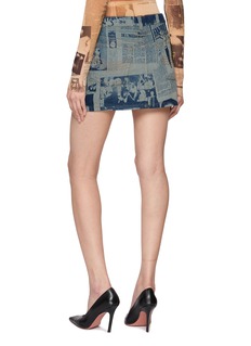 Archival headlines and monochrome imagery collide in this Jean Paul Gaultier mini, channeling the house’s fascination with media, provocation, and the body. Cut from structured cotton, it sits confidently at the waist—perfect with a sheer printed top or sharp tailoring for after-dark statements.
