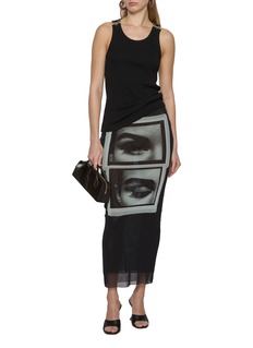A sculpted essential reimagined through Jean Paul Gaultier’s subversive lens. This ribbed cotton tank is punctuated with industrial buckle hardware at the shoulders—injecting a utilitarian spark into a body-skimming silhouette. Perfect for grounding tailored layers or amplifying evening textures with an effortless edge.