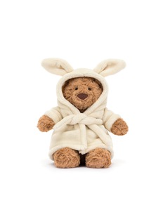 Discover the classic allure of Jellycat's Bartholomew Bear, an iconic plush figure revered for its fluffy, tousled fur and podgy form. This special rendition features Bartholomew in a cozy bathrobe, emphasizing his love for dressing up. A beloved companion for children and a prized acquisition for adults, this bear is designed its cuddle-worthy appeal but also as a sophisticated collectible.