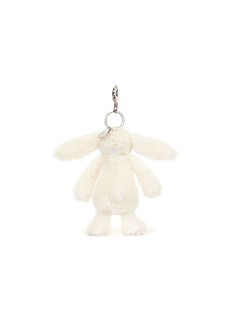 This Blossom Bunny Bag Charm has been hopping around the garden. This pocket-sized Blossom Bunny is soft in iconic Bashful fur, and has soft cotton ears, printed with an original Jellycat design of juicy strawberries and cream flowers on a pink backdrop. Use the silver clasp to attach bunny to any bag for the perfect outdoor adventure companion.