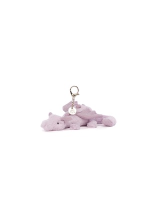 Whatever the weather, the Dragon Bag Charm will be there for you. This loveable dragon is snowball-soft, with soft purple fur and sparkles on the ears, spines and wings. With a cute curved tail, silver claw clip, Jellycat disc and tiny paws, this cosy pal wards off the chills!