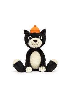 Jellycat Jack is finally here! This tuxedo cat has soft tufty fur, huge stitched paws and a friendly smile. With a long curved tail and L-shaped paws, Jellycat Jack has a soft velour crown of iconic orange jelly.