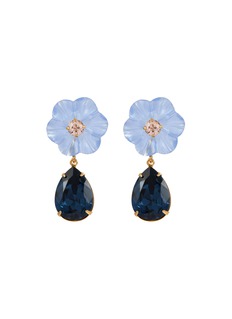 Featuring in a romantic drop silhouette, the Juna earrings are crafted with blue chalcedony. Made by hand in New York with an 18k gold-plated setting, the hand-carved detail on each flower highlights the unique inherent beauty of the organic forms.